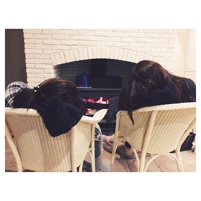 一起烤火一起睡著。